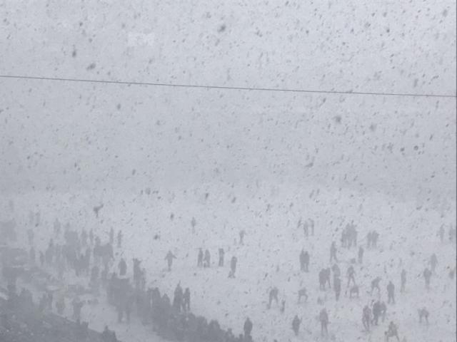 7-Um jogo de futebol durante uma tempestade de neve