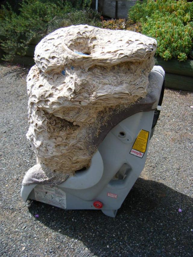 As vespas de papel usam fibras de madeira e sua saliva para construir ninhos. Quando uma vespa encontra um material apropriado, coloca a saliva sobre ela e, movendo-se para trás, raspa fibras de madeira extremamente finas.