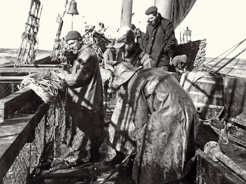 Não por acaso, em 1937, há uma espécie de sublevação coletiva dos pescadores, numa greve da qual resulta um abalo para o regime, até por surgir num ambiente de grande crispação fascista e delírio anticomunista, exacerbada pelo atentado a Salazar, perpetrado por anarquistas. Assiste-se a uma repressão implacável dos pescadores, com inúmeras prisões e a publicação de um decreto de recrutamento obrigatório. Passam a ser considerados desertores os pescadores que se recusem a embarcar no mesmo navio da campanha anterior. Ficava abalada a imagem propagandística laboriosamente construída por Henrique Tenreiro e outros ideólogos mais sofisticados à volta da ideia do pescador-marinheiro. De alguma forma, ser pescador de bacalhau constituía o topo da hierarquia das pescas. Era a projeção da imagem do navegante, do herói do mar.