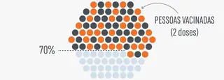 Percentagem da população residente com a vacina completa. Em países e territórios com mais de 400 mil habitantes