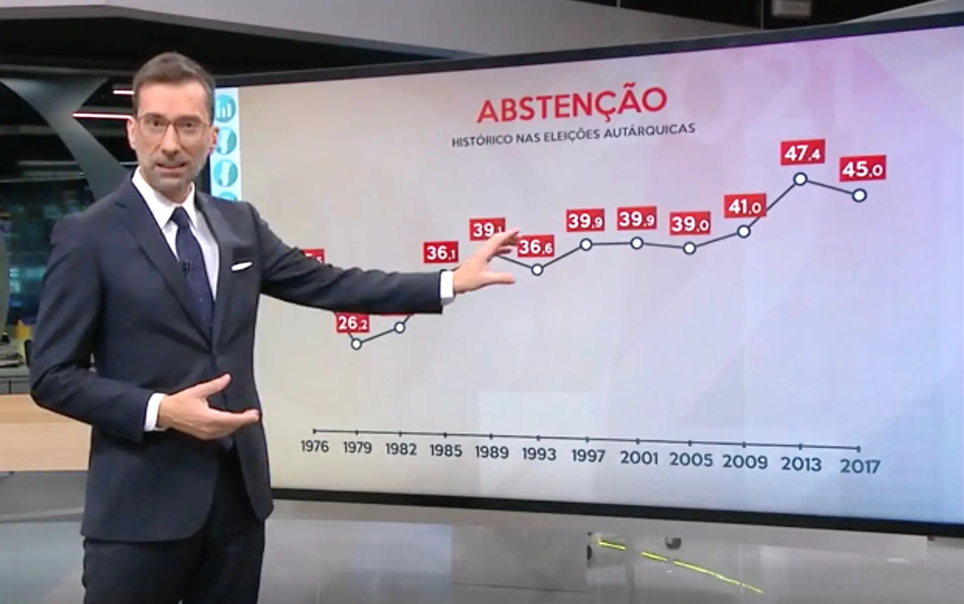 Esta é a segunda taxa de abstenção mais alta desde as primeiras eleições autárquicas em 1976. Só nas eleições de 2013 é que se atingiu uma percentagem ainda mais elevada, chegando aos 47,4%. Há quatro anos a abstenção foi de 45%.